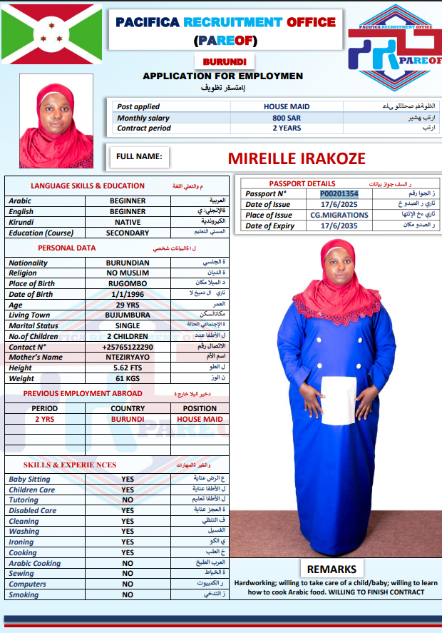 الجنسية بورندي - نقوة مدربات ( مسلمات )