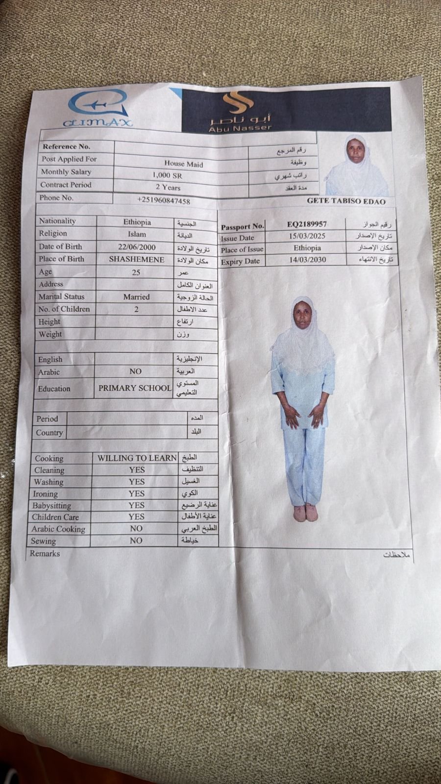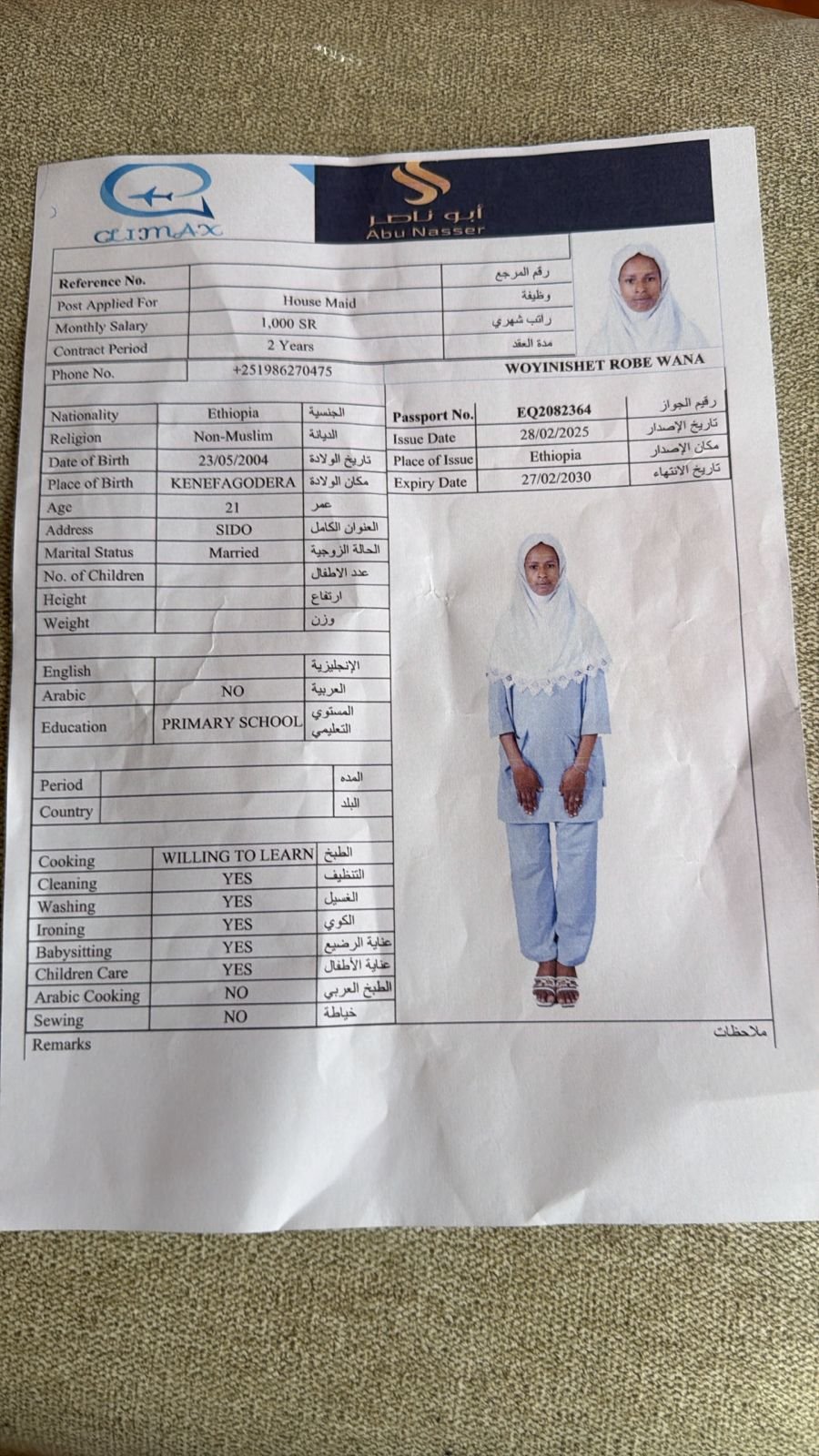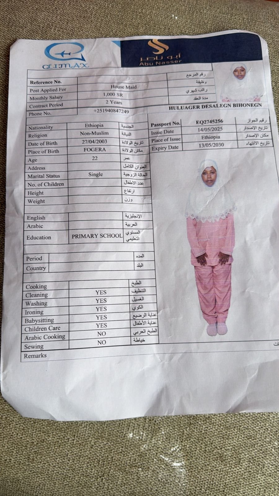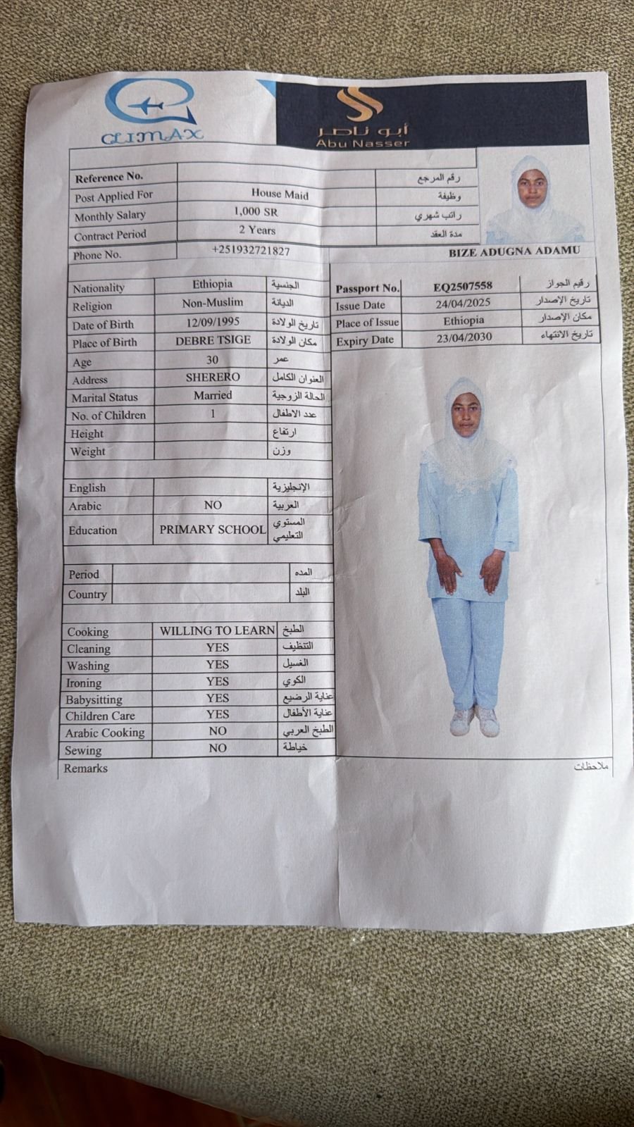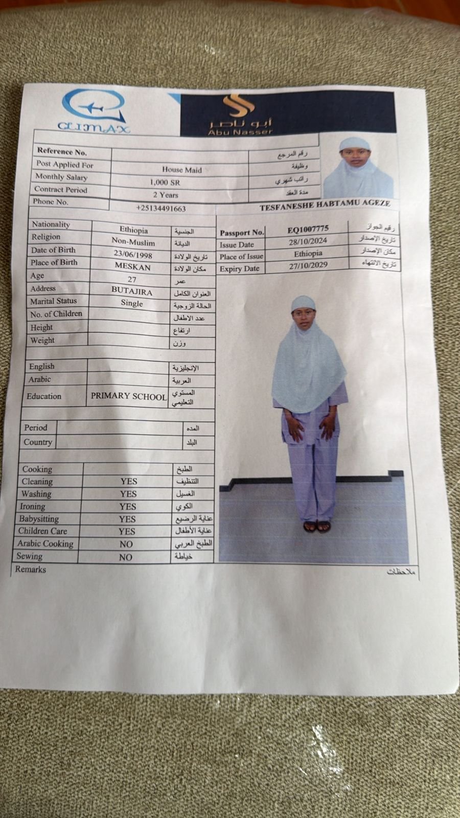 الجنسية اثيوبيا - نقوة ابو ناصر (مسيحية )