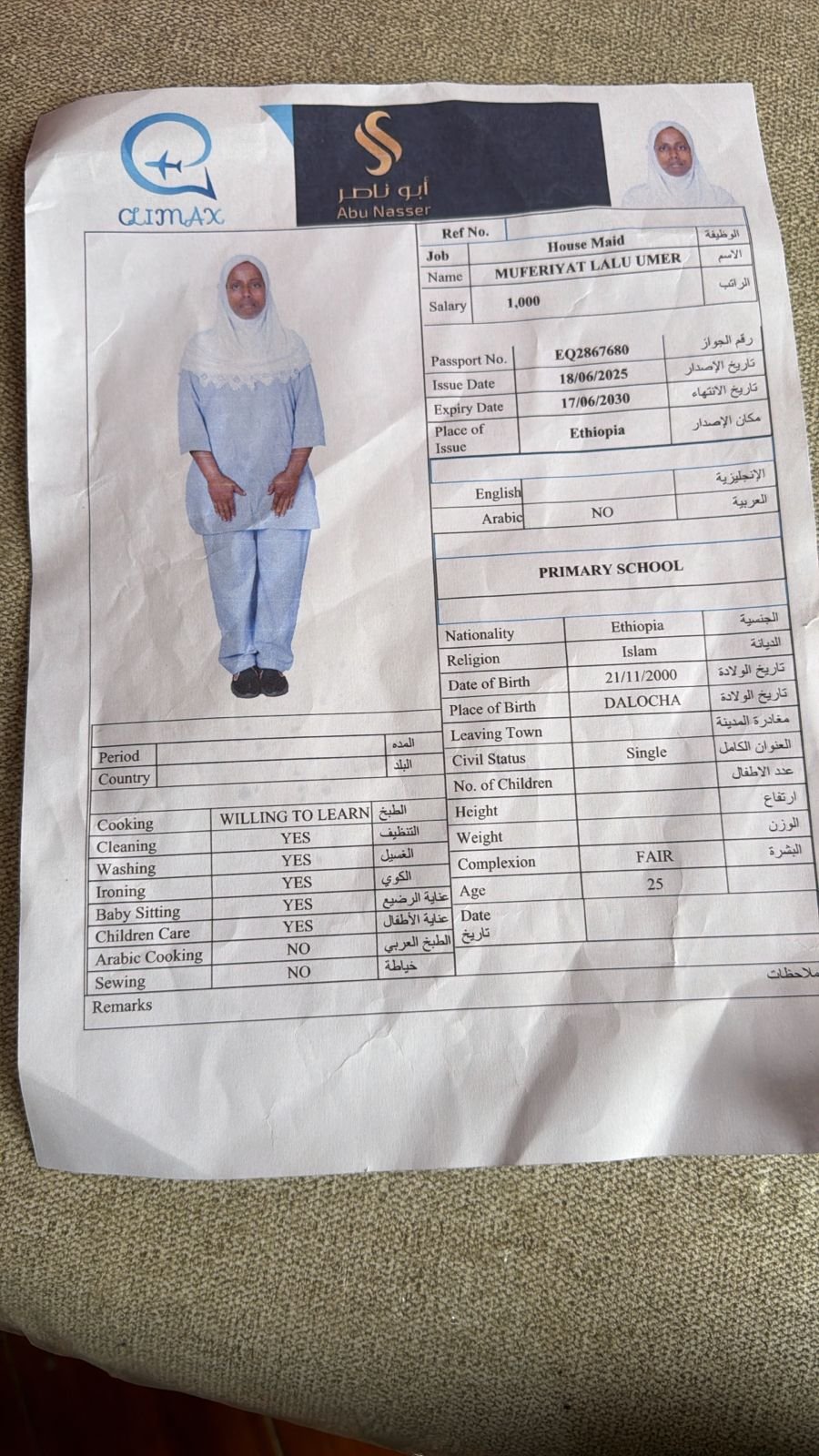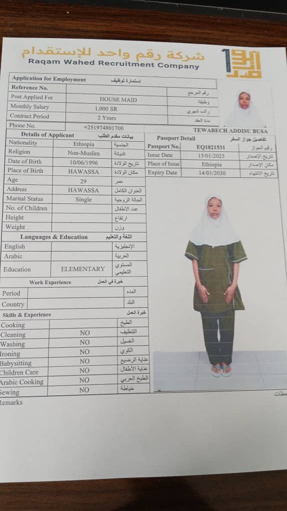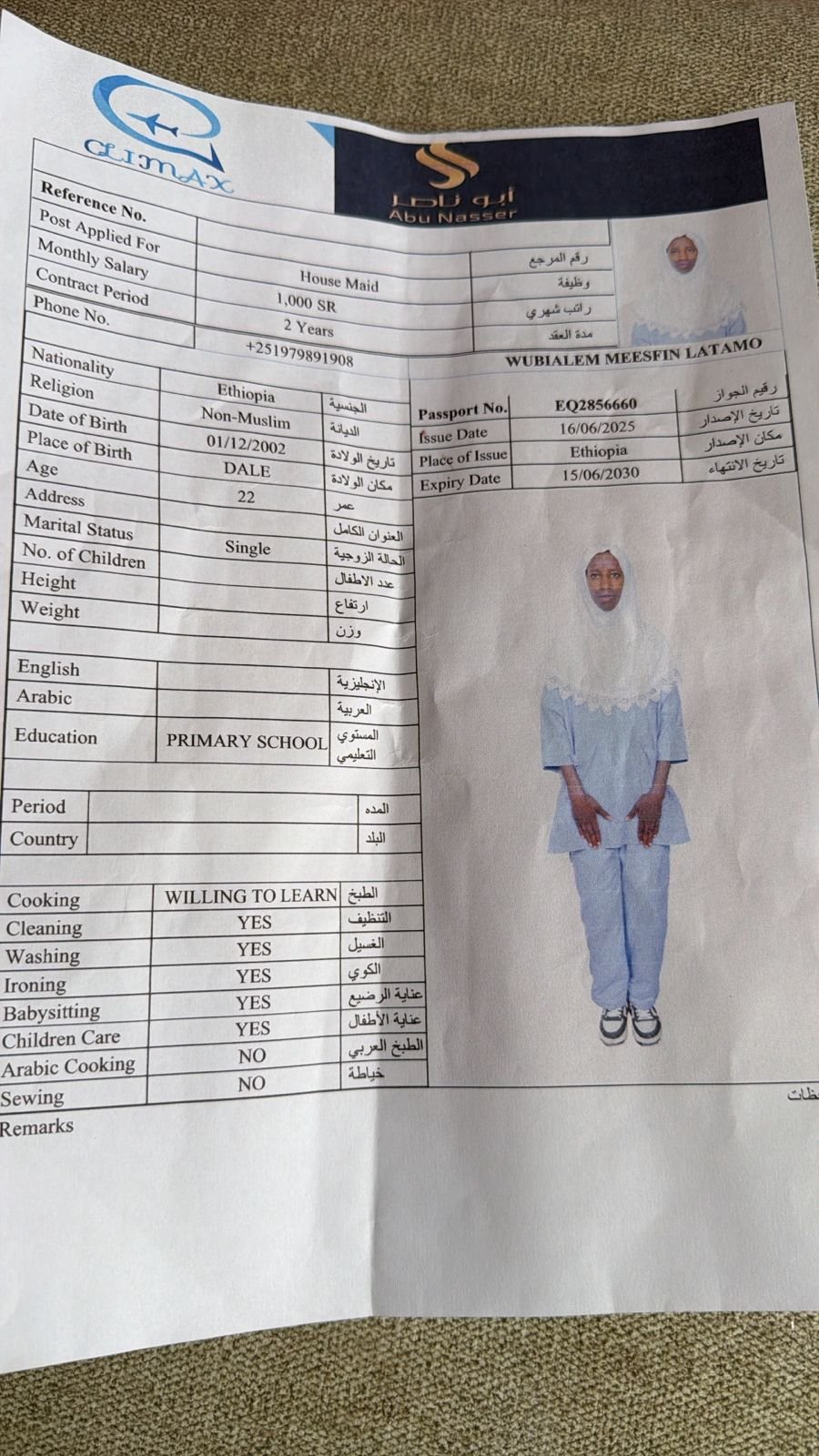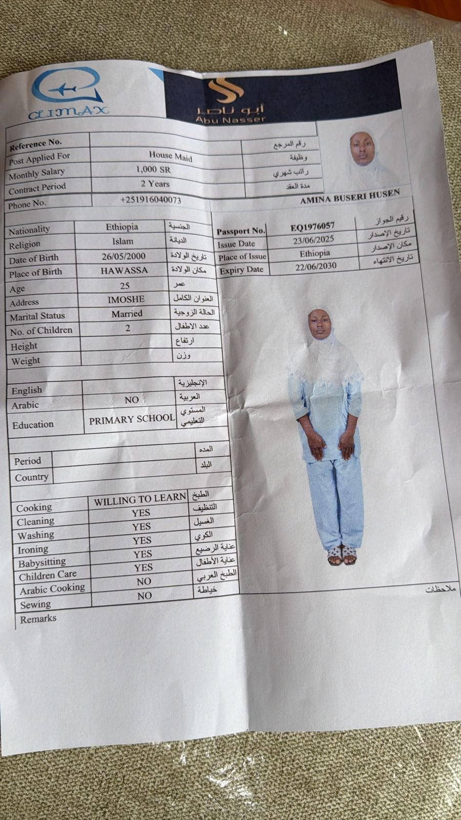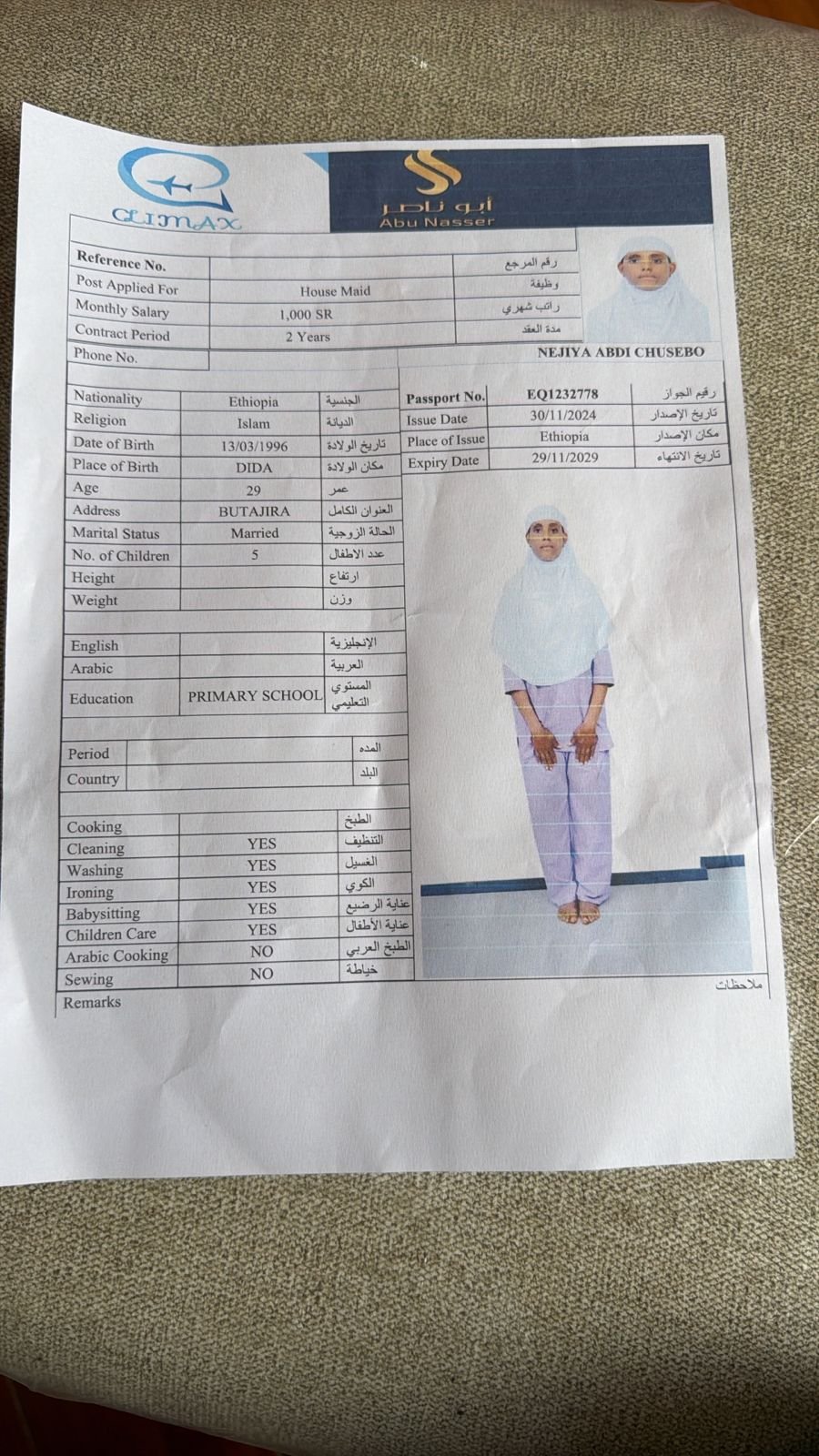 الجنسية اثيوبيا - نقوة ابو ناصر (مسيحية )