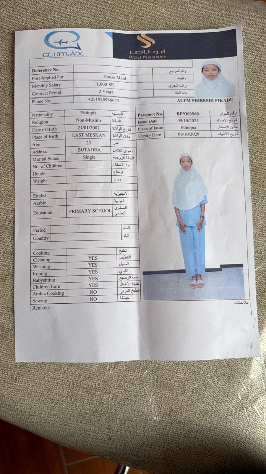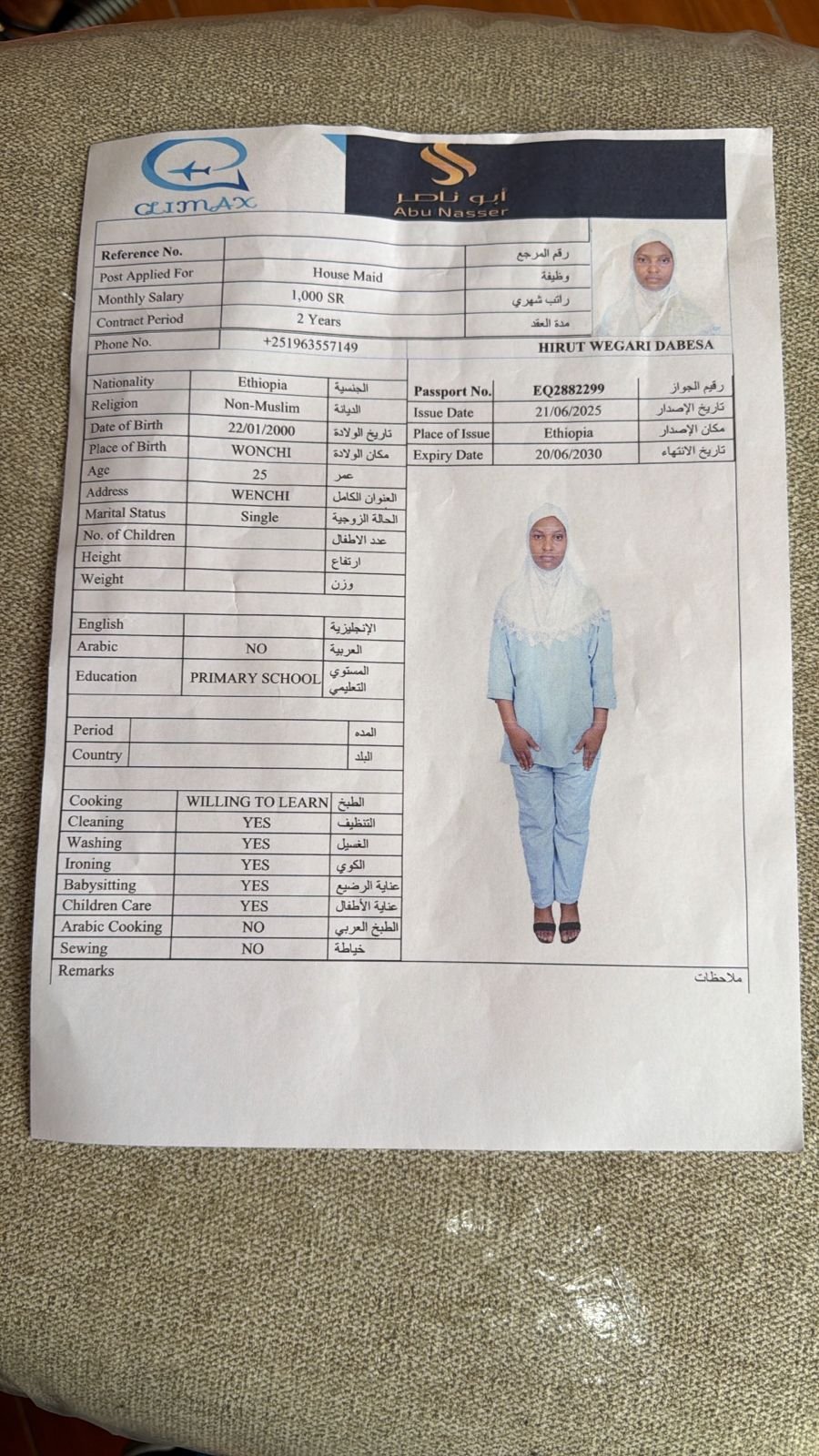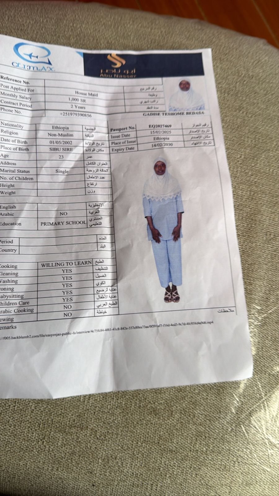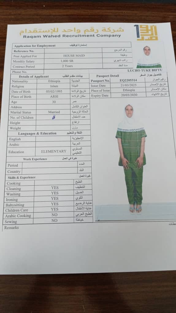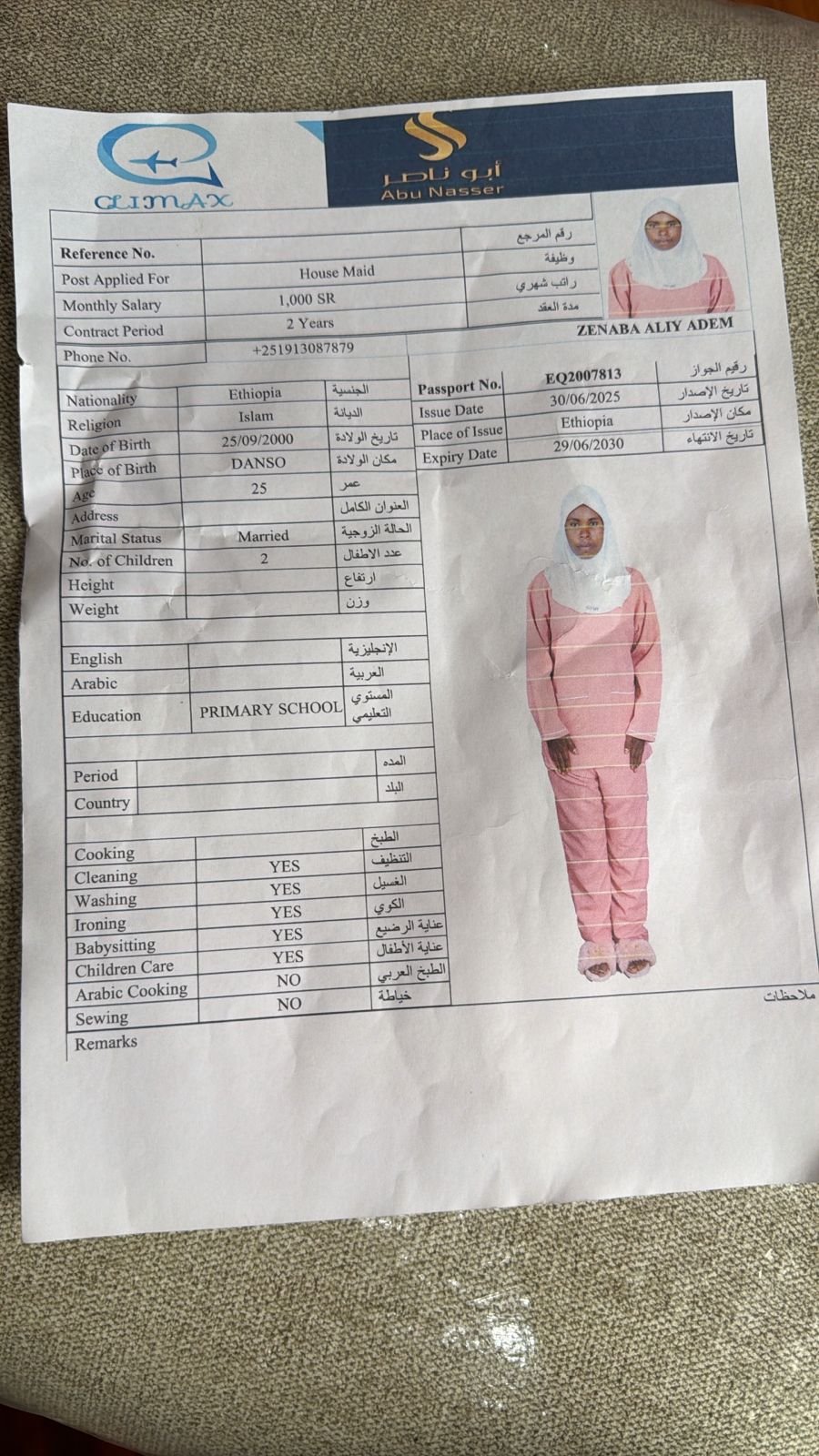 الجنسية اثيوبيا - نقوة ابو ناصر (مسيحية )