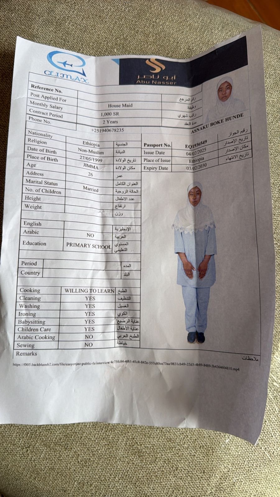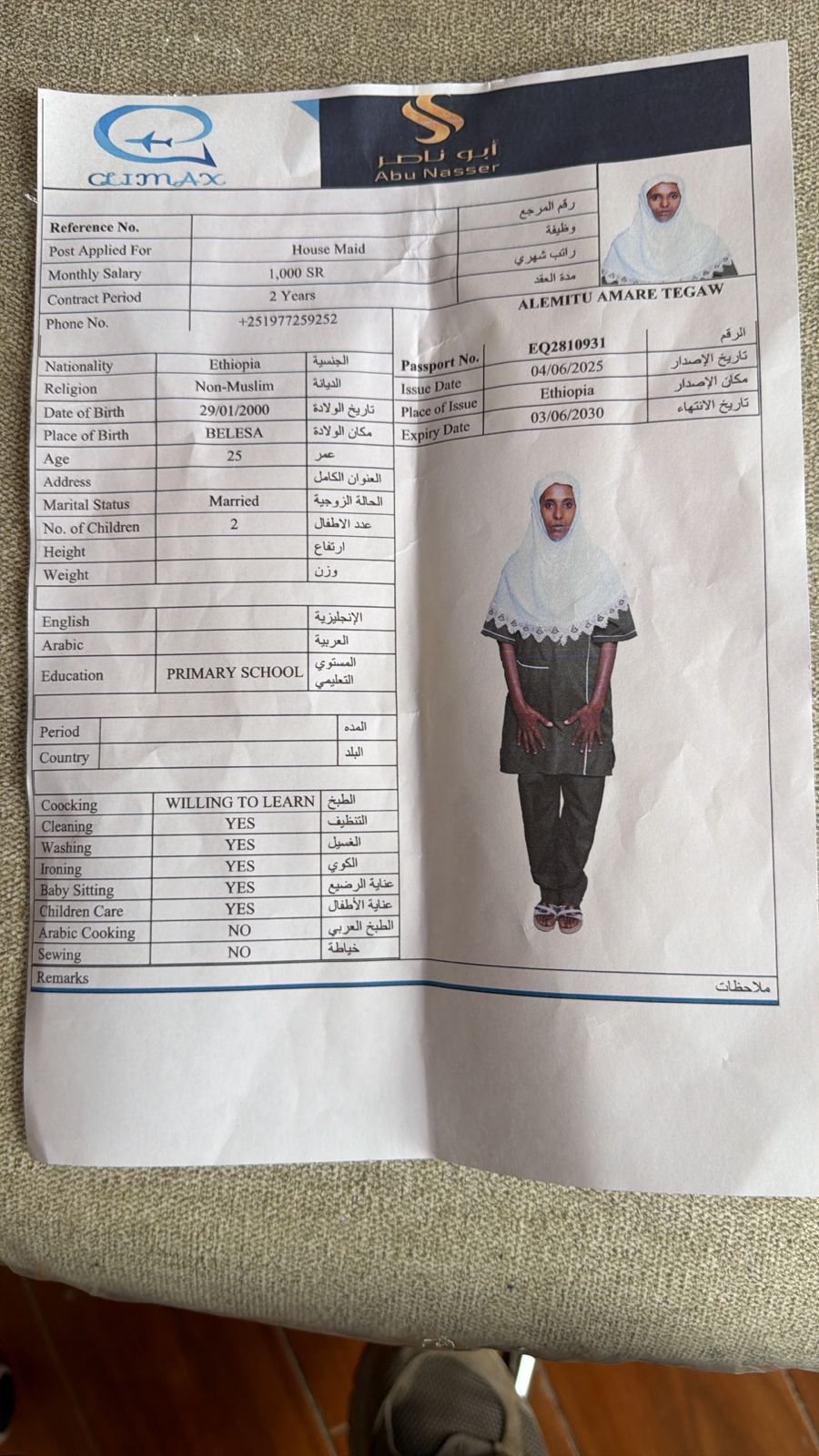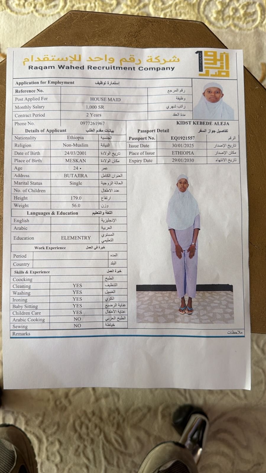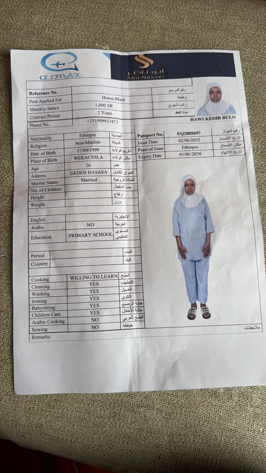 الجنسية اثيوبيا - نقوة ابو ناصر (مسيحية )