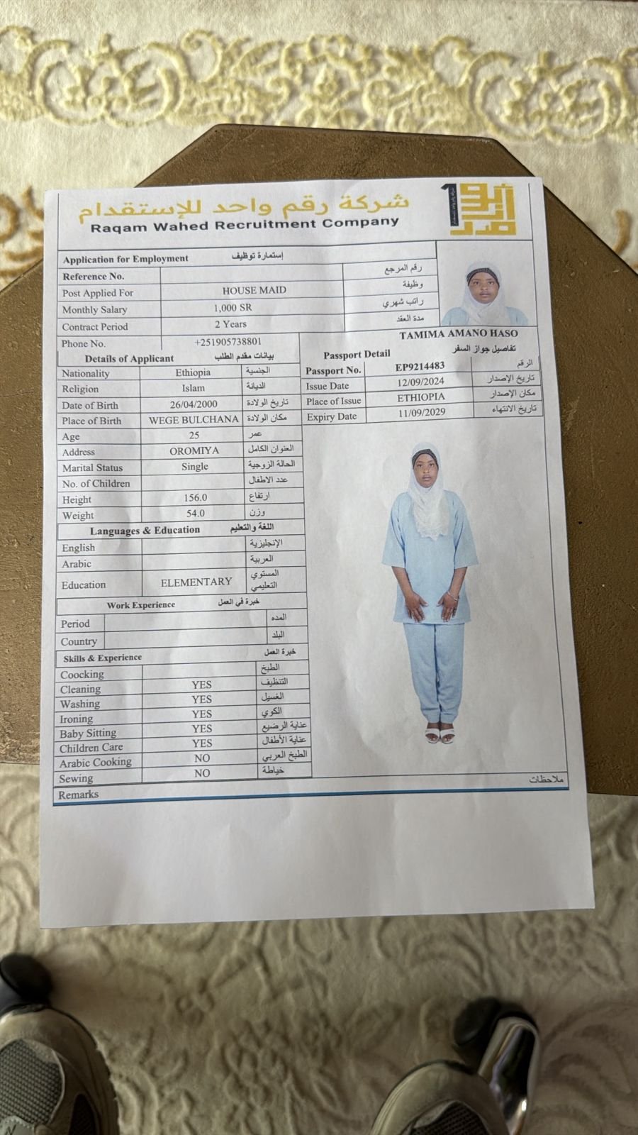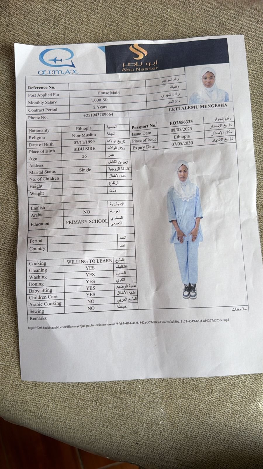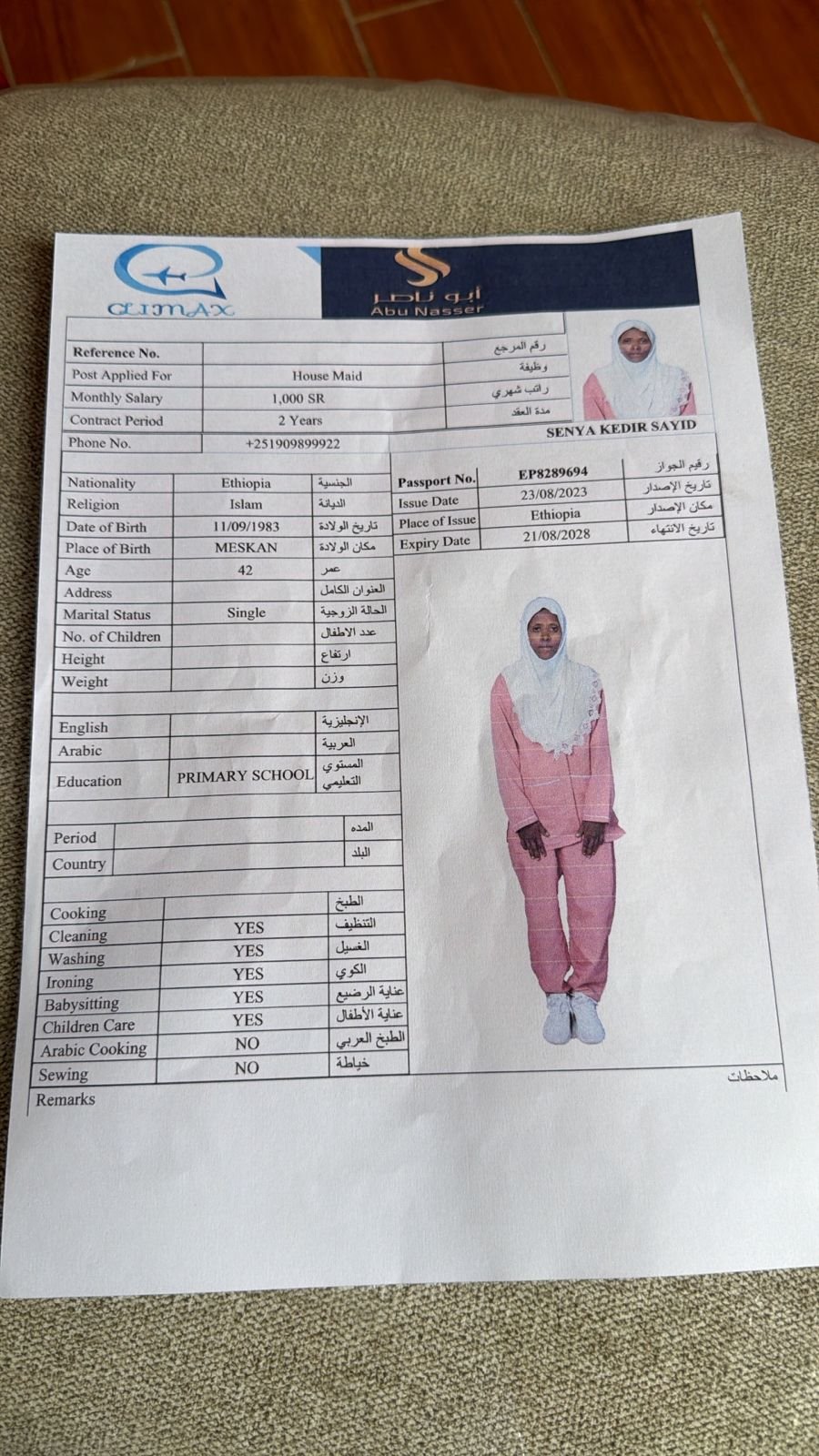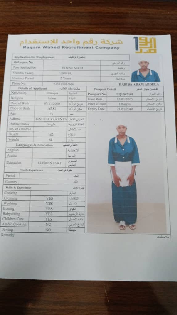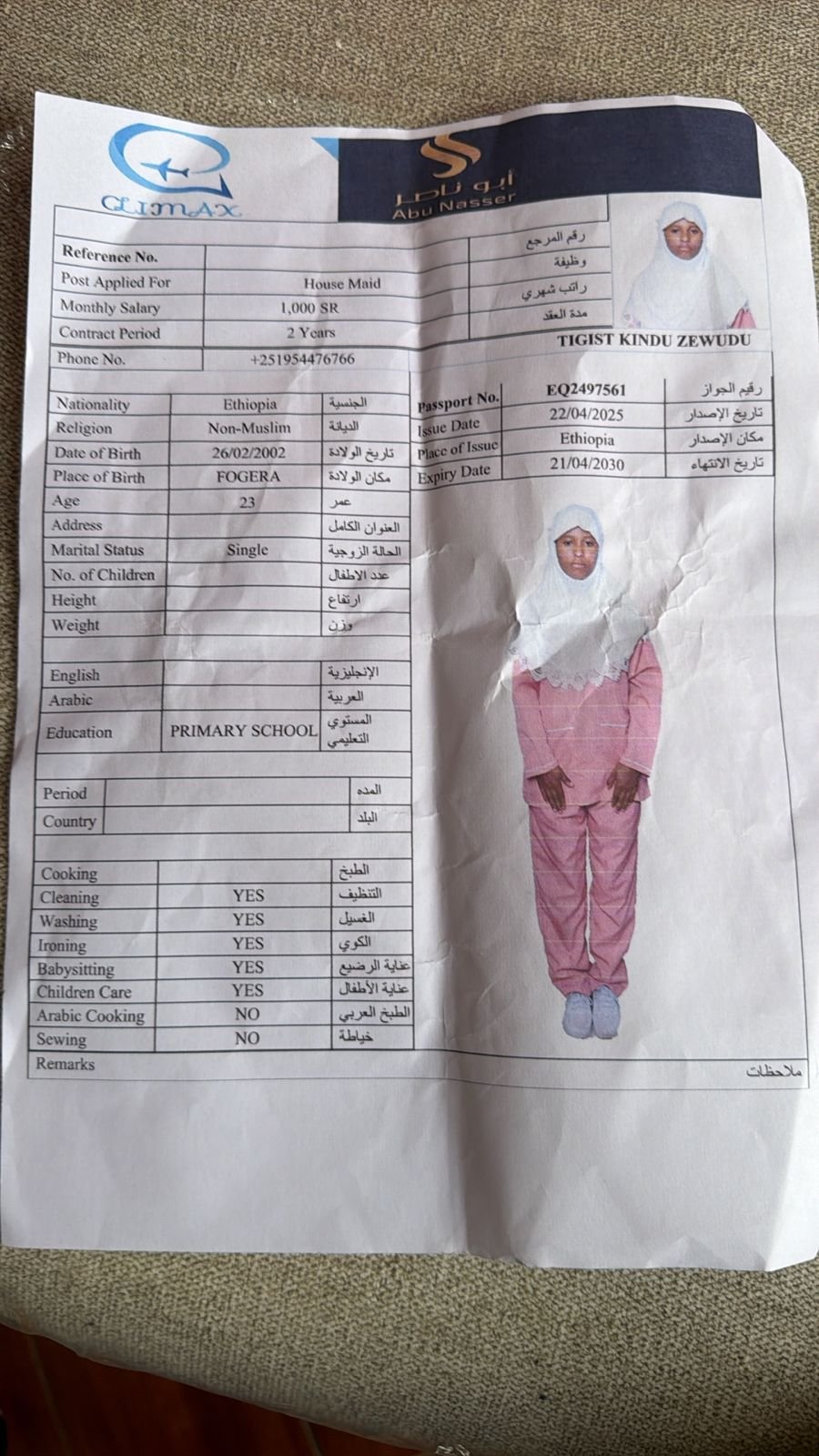 الجنسية اثيوبيا - نقوة ابو ناصر (مسيحية )