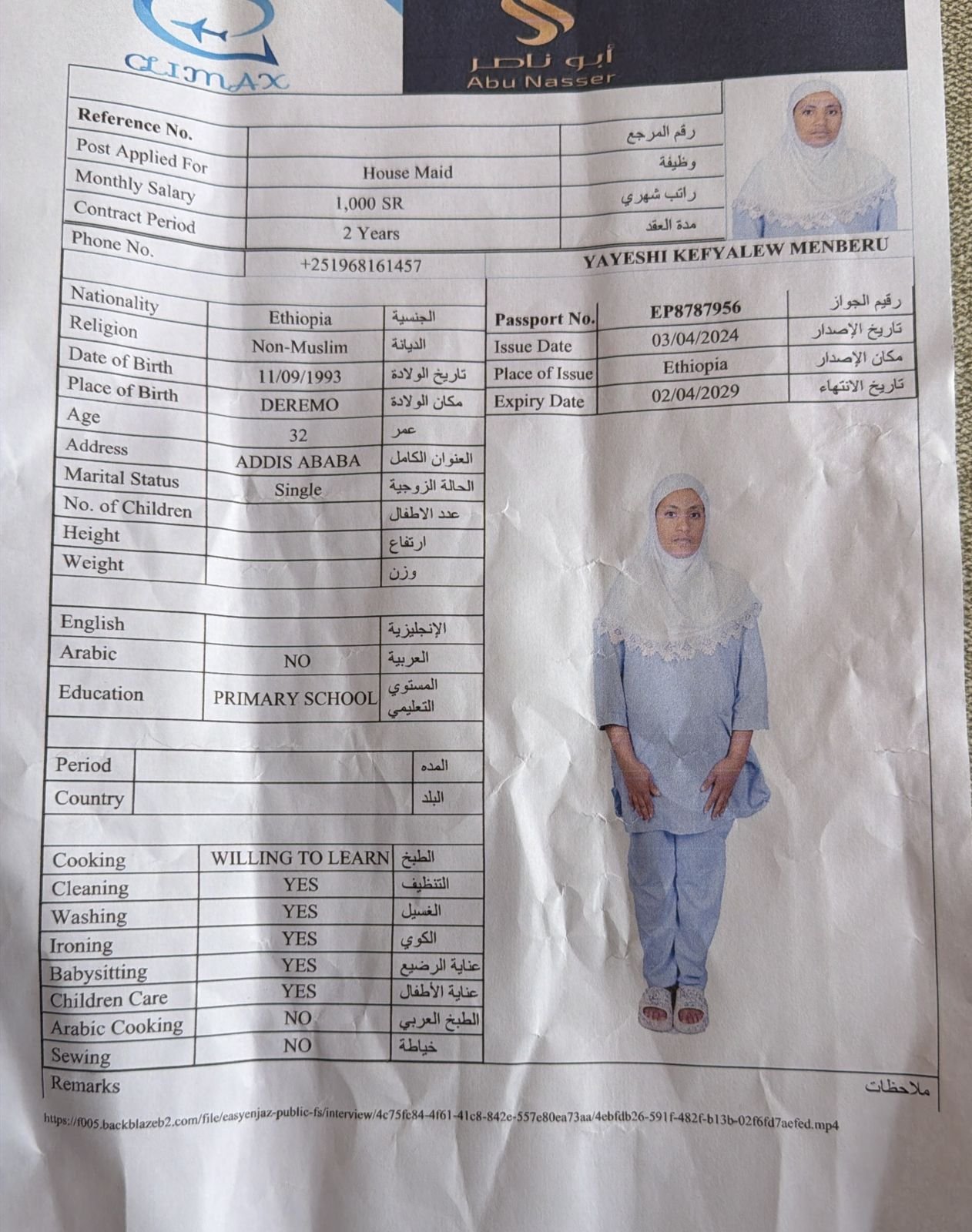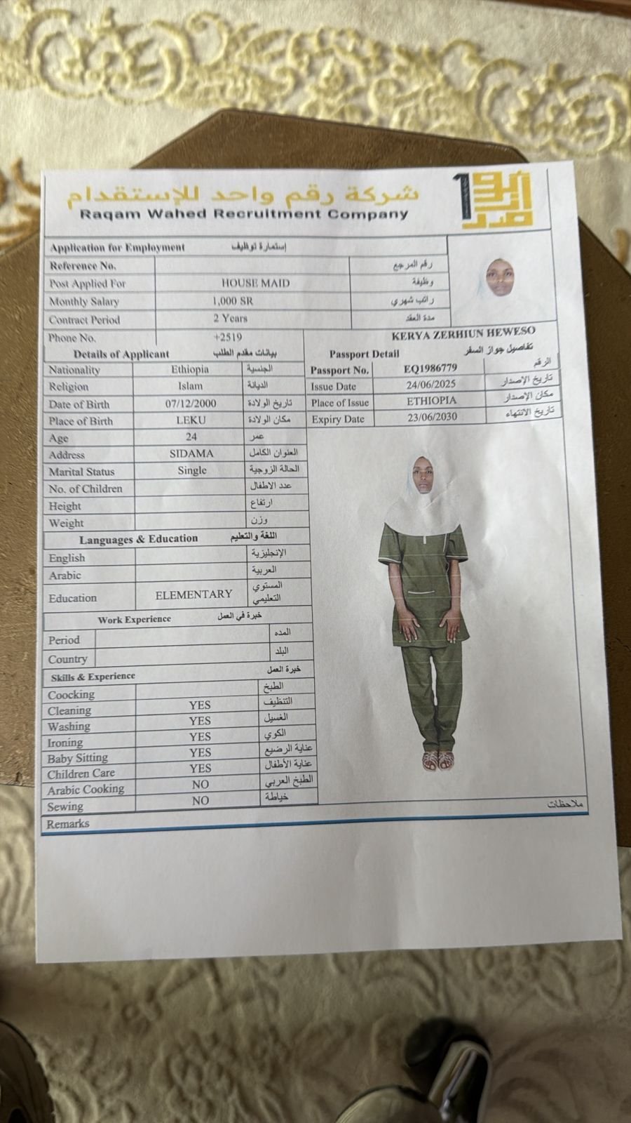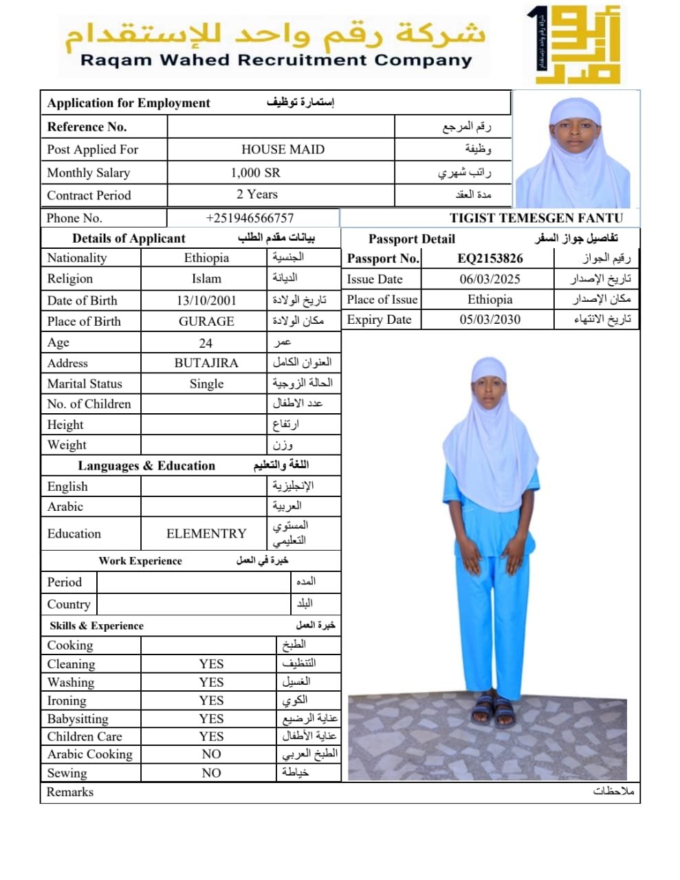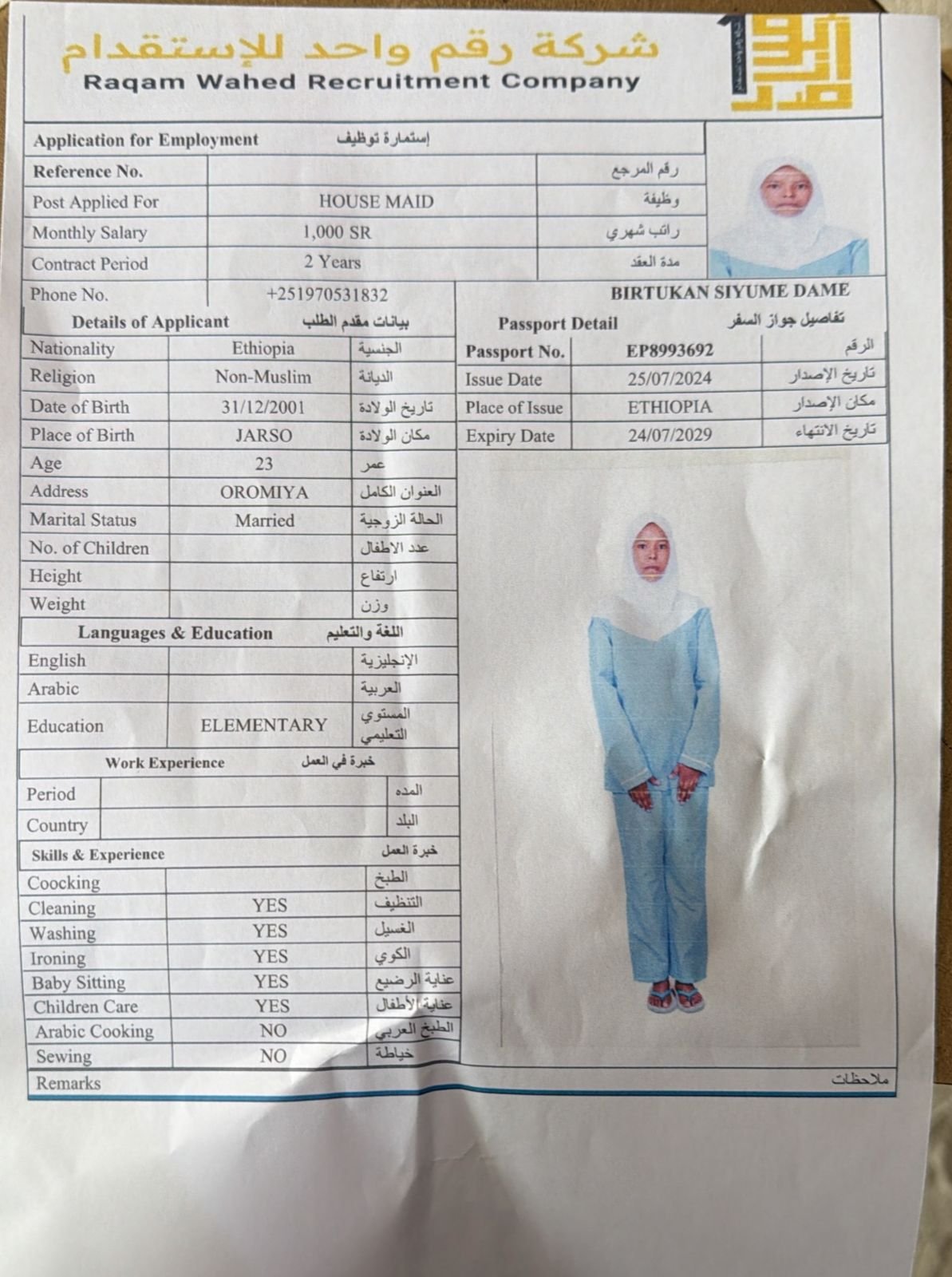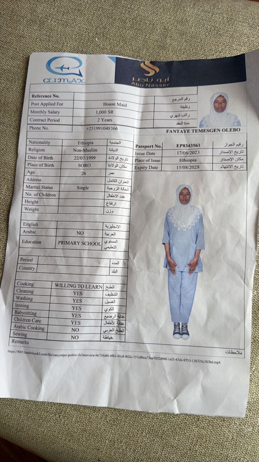 الجنسية اثيوبيا - نقوة ابو ناصر (مسيحية )