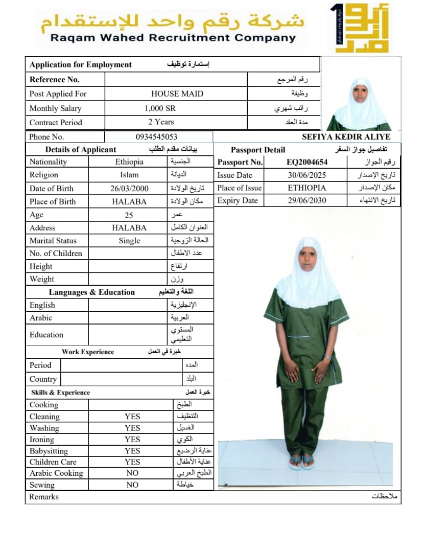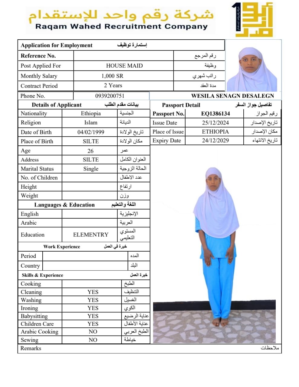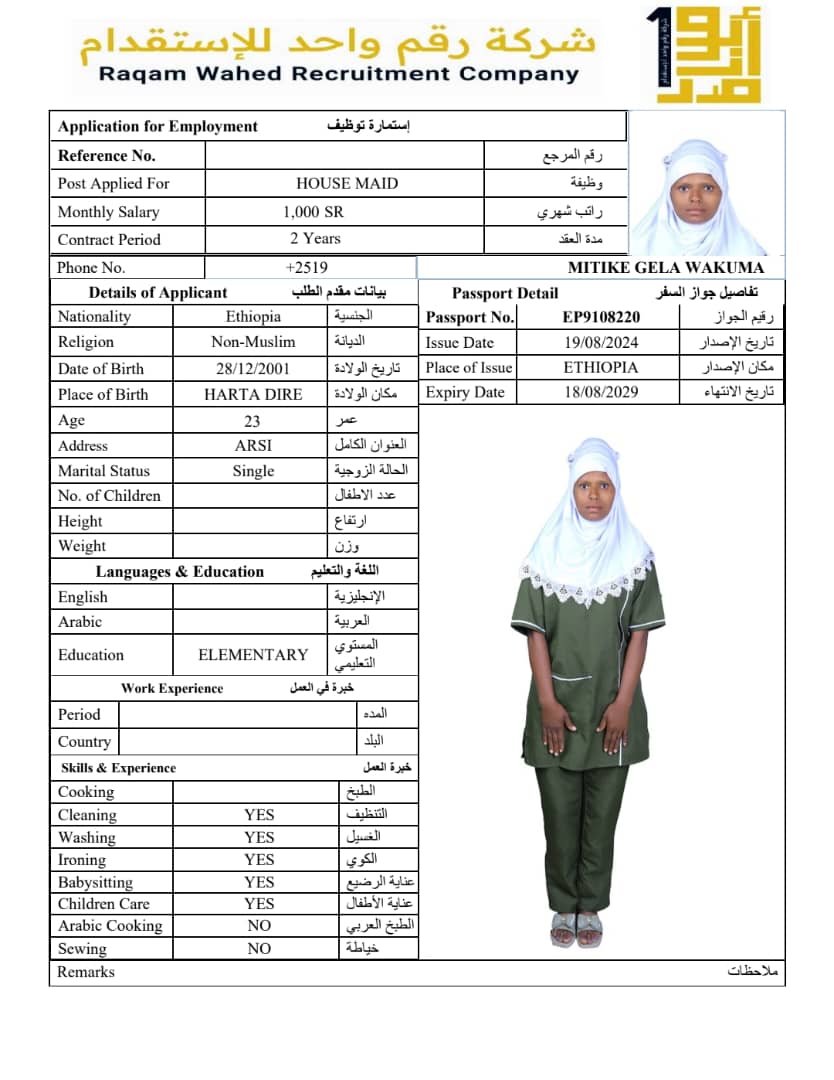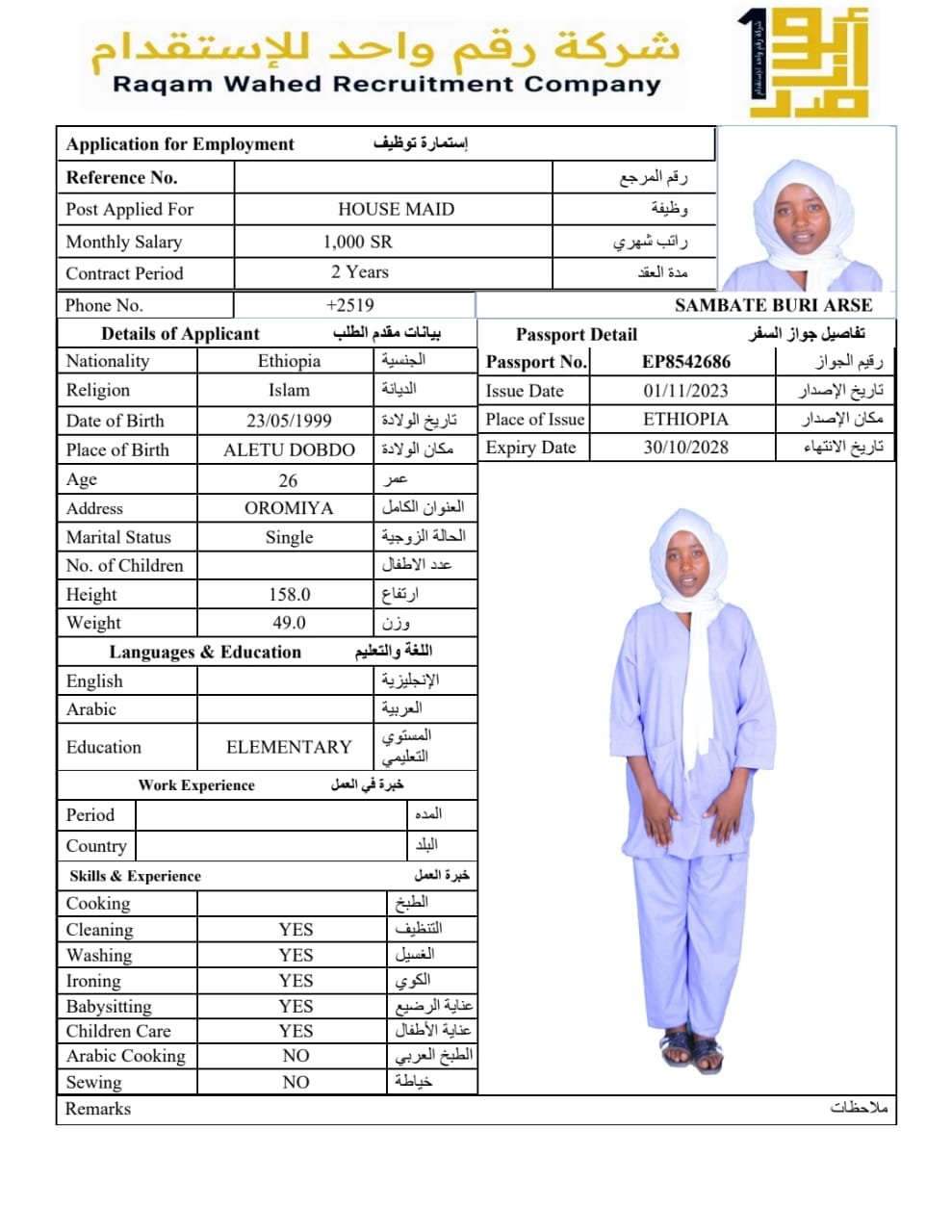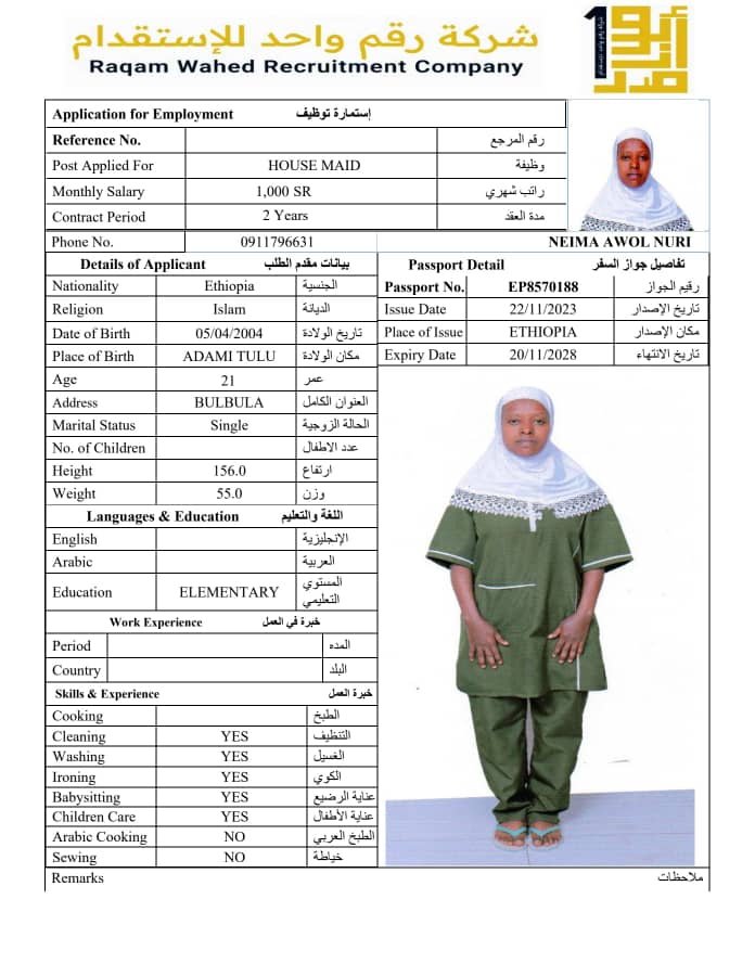 الجنسية اثيوبيا - نقوة ابو ناصر ( مسلمة )