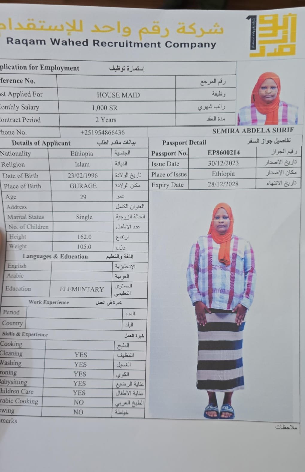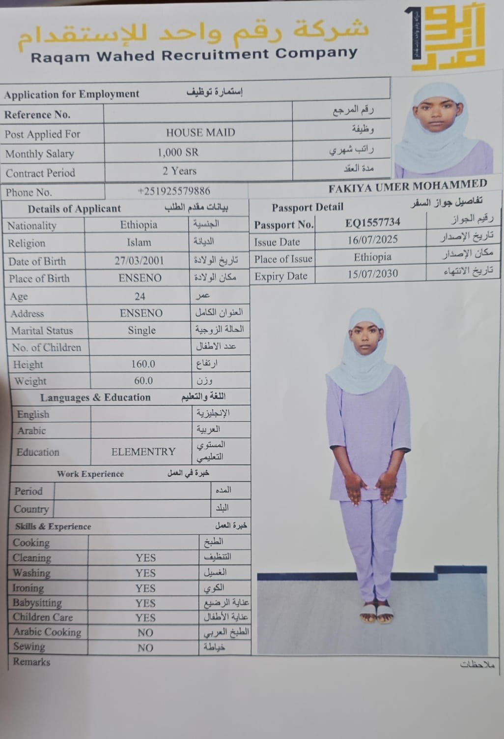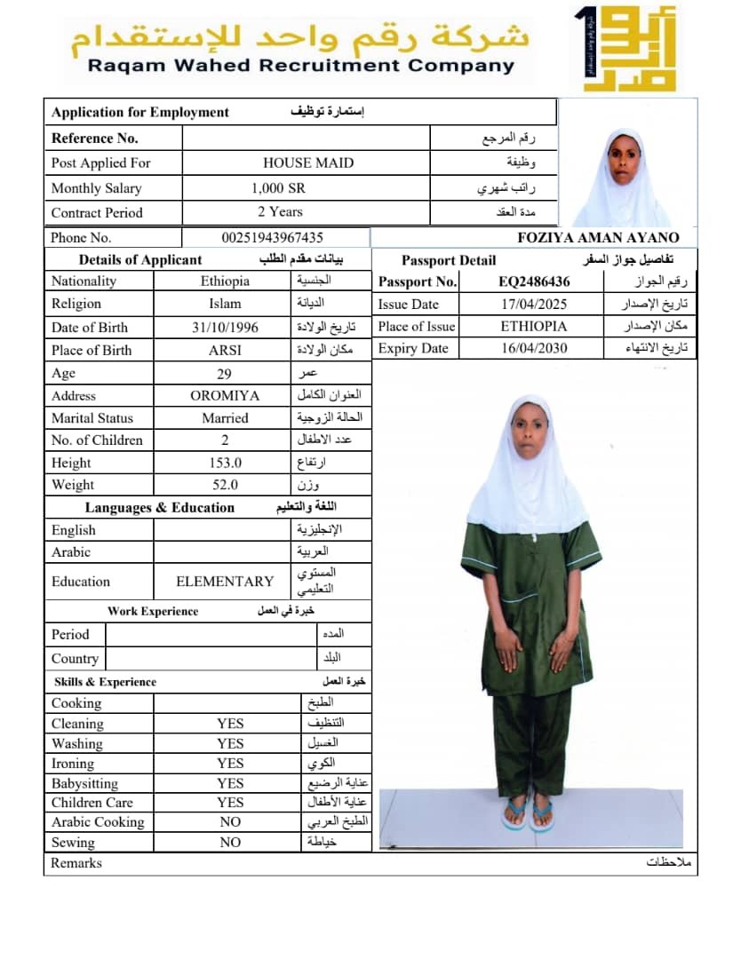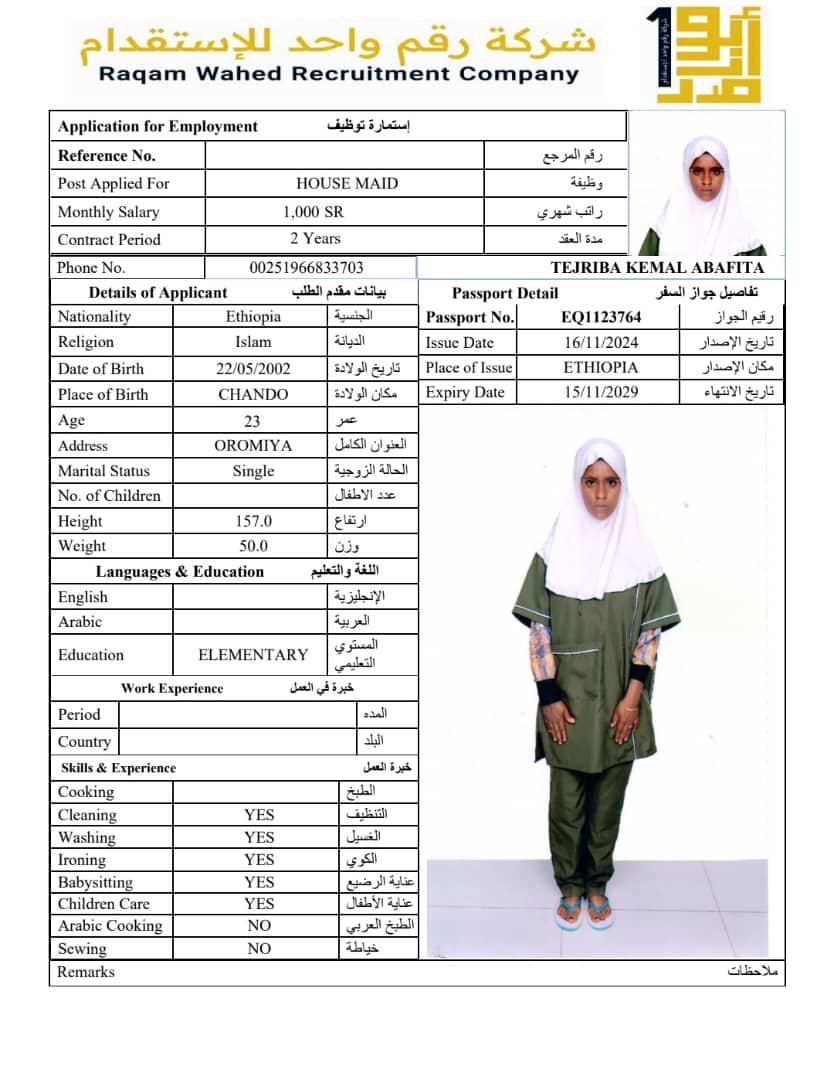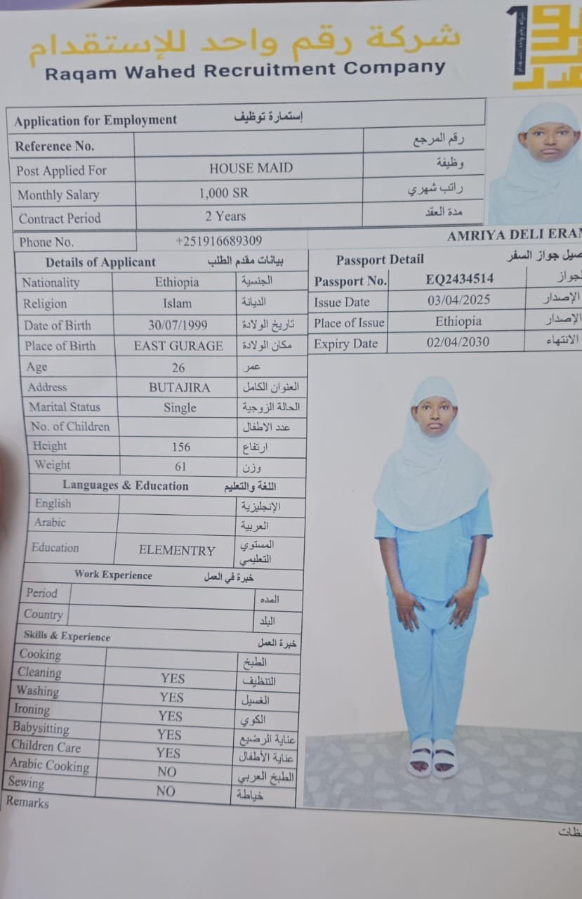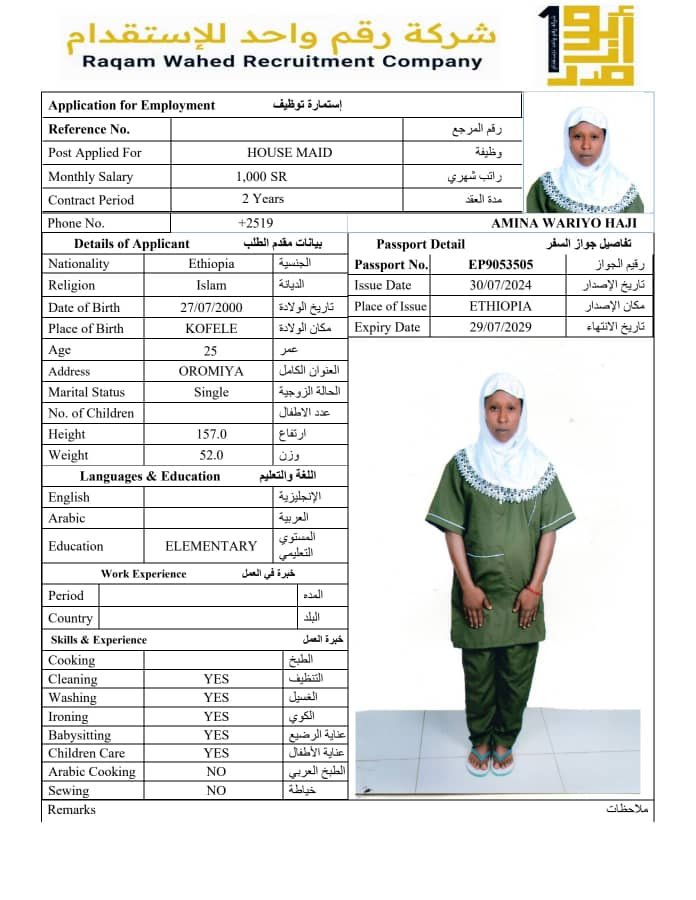 الجنسية اثيوبيا - نقوة ابو ناصر ( مسلمة )