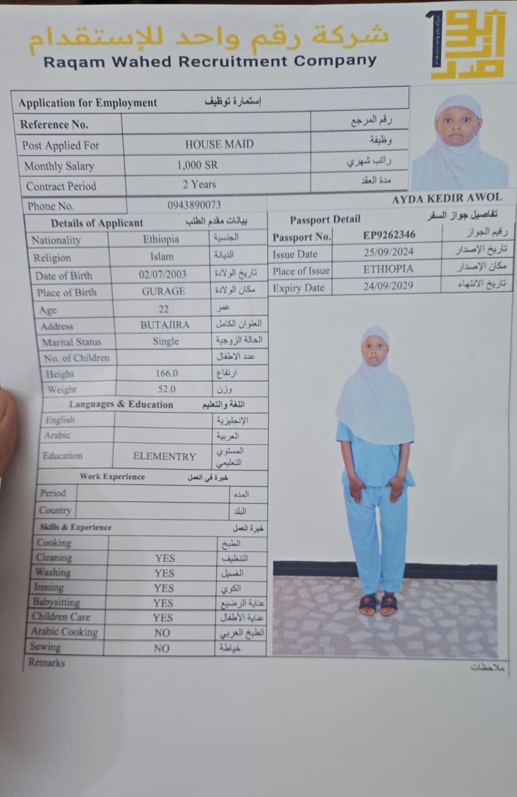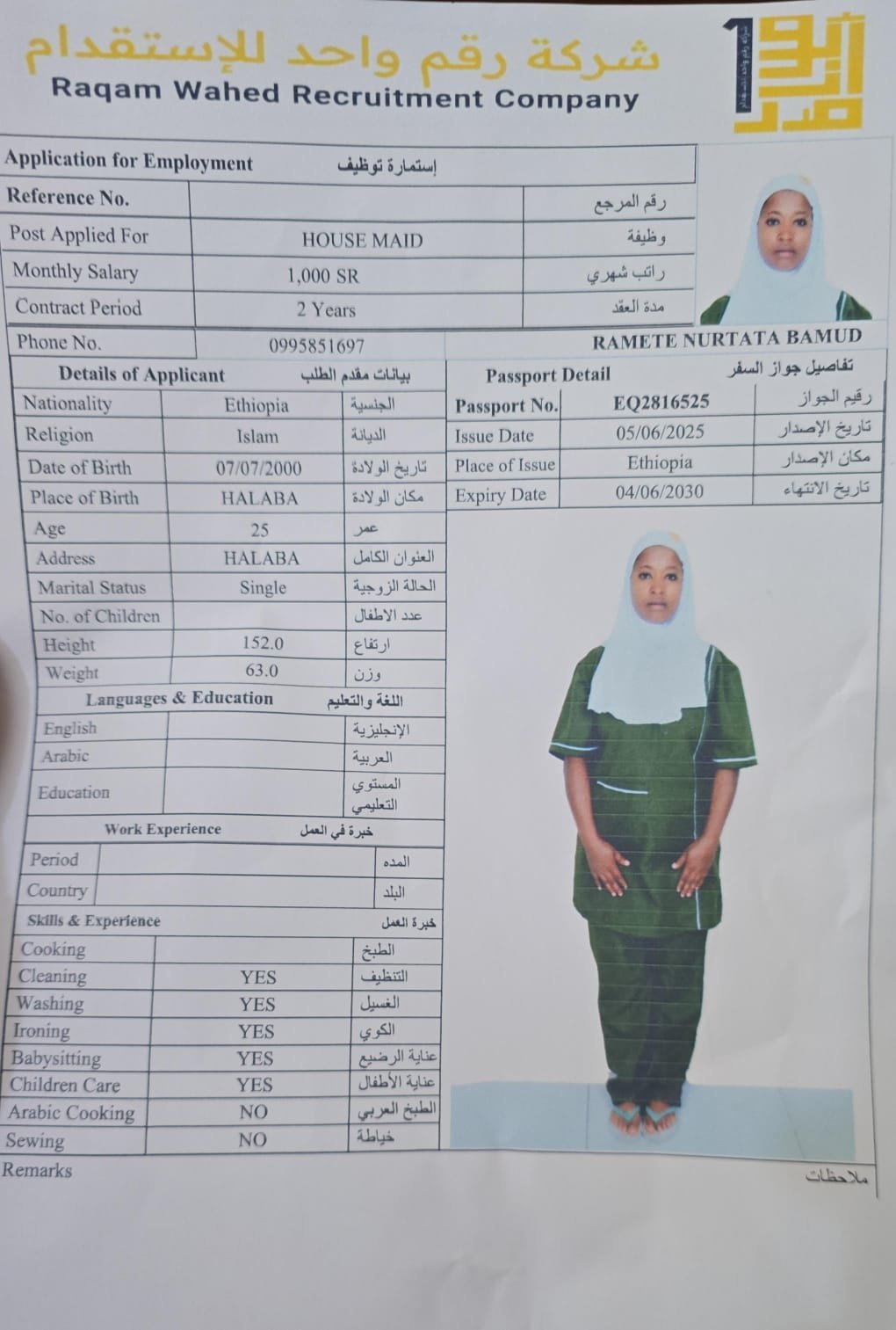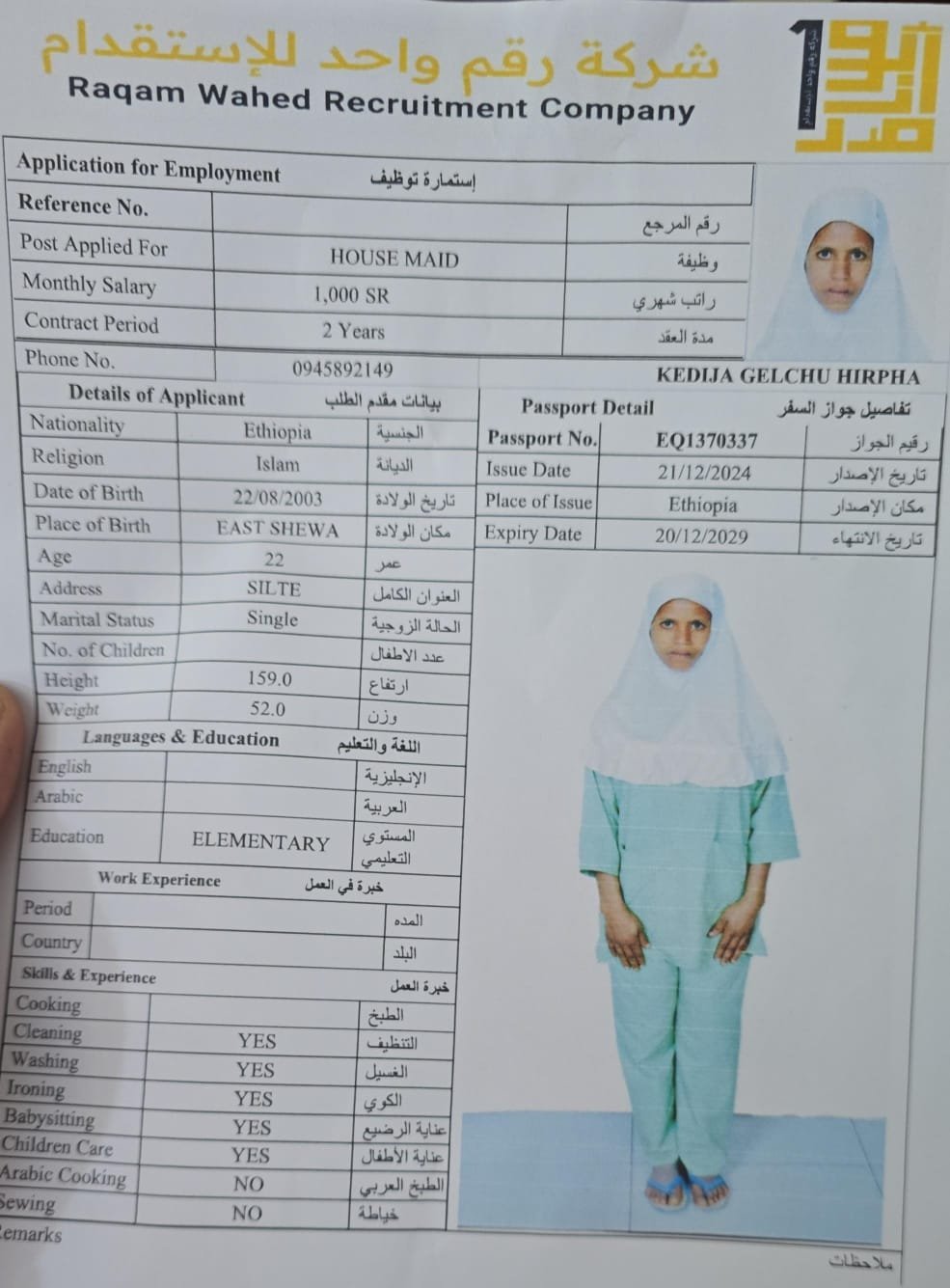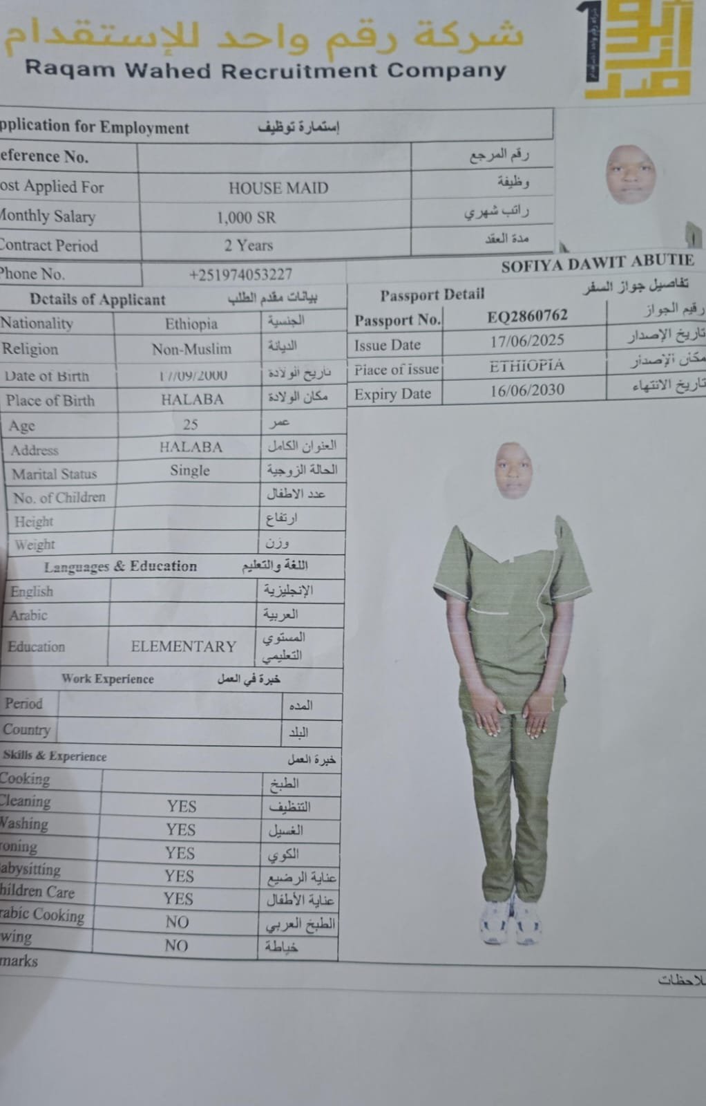 الجنسية اثيوبيا - نقوة ابو ناصر ( مسلمة )