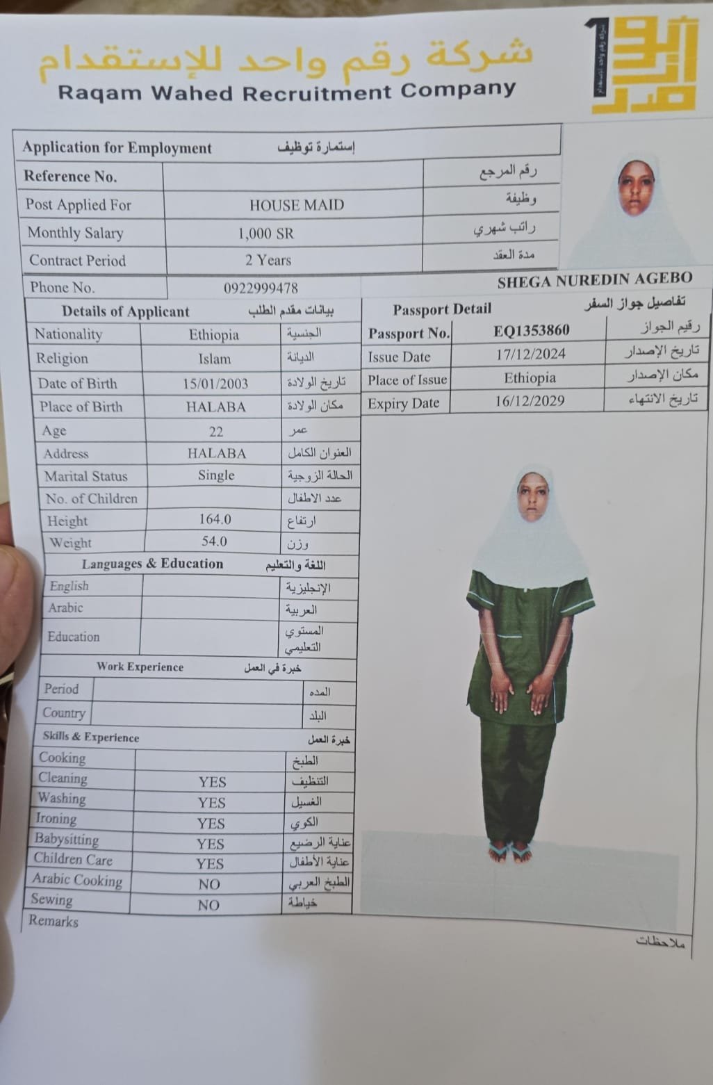 رقم الجواز Eq1353860